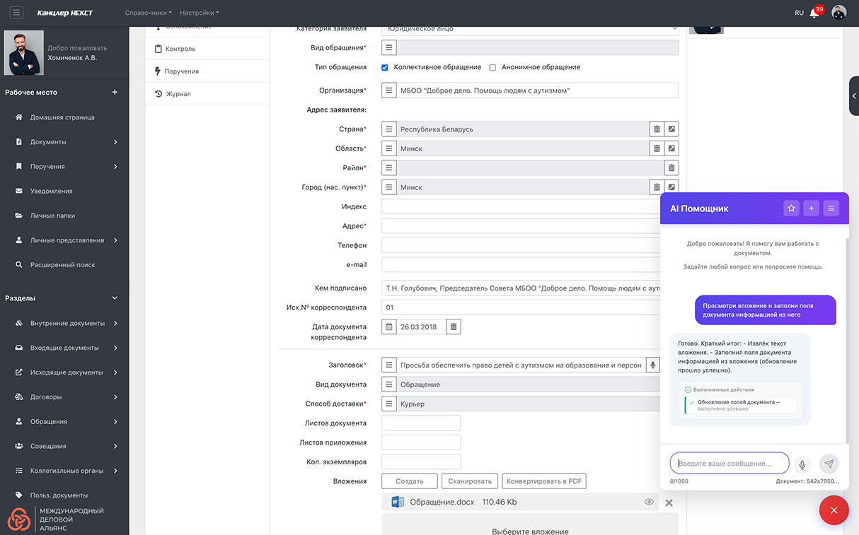 Работа с документами через голосового AI-помощника: от ручной регистрации к автоматическому извлечению данных и запуску маршрута